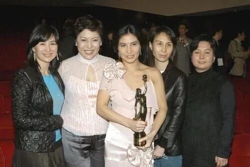 ▲2004年拿到金像奖最佳女配角时,全家姐姐都到齐为她庆祝。