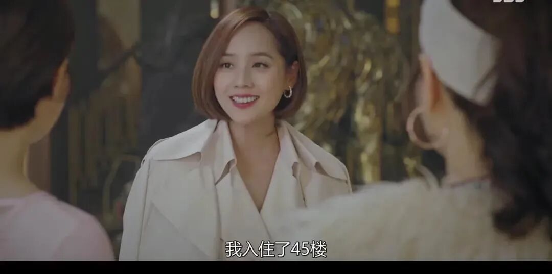楼高100层,大楼内装修富丽堂皇,属于大平层户型,还包含复式,面积少说也在200平以上;一栋楼里还分为high zone 和low zone,其实也就简单粗暴地划清了人的阶级。▲虽然都是上流社会,但上流社会也还是分层次的,高楼层住着的是上流社会的顶层,而低楼层住着的是有钱的中产阶级。本剧的第一位大BOSS是金素妍扮演的千瑞珍,她是韩国大财团长女,又是大明星,住在high zone。另外两位,律师太太和浑身散发暴发户气息的女主人,进入low zone电梯,走之前还要对千瑞珍点头哈腰。其实剧集里有很多这样用楼层来刻画阶层的方式,比如《东京女子图鉴》里,婚后的女主角绫跟丈夫住在价格不菲的公寓高层里,而楼下房租相对便宜。他们下楼时遇到来自低楼层的女士,绫和丈夫目睹了“穷人”租户的窘迫,通过这样的剧情隐晦指出了金钱与楼层关系;《顶楼》里设定就很直白:中产也只配被富有阶层“踩在脚下”。