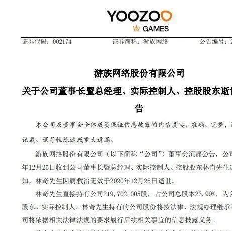 ▲林奇离世后,网络爆料者爆出已逝前董事长林奇有私生子,而此前,上市公司1月11日公告,游族网络实控人将变更为林奇末成年子女的母亲许芬芬,据称林奇所持股份由未成年子女继承。
