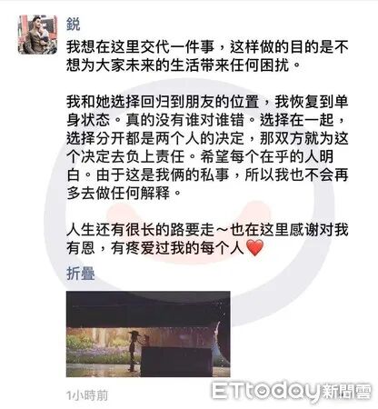 16年因拍摄《我和我的十七岁》与女主之一的周晓涵扯出暧昧关系,而他当时还有圈外女友:和圈外女友分手,又和周晓涵很快玩完。18年初,他被拍到和歌手曾沛慈在车内热吻:结果恋情直接见光死,没几天他的女友就换成了“台大五姬”的资工弥:▲ 资工弥,原名余函弥,过去上过康熙,13年退圈后自己经营起了服装品牌当老板,倒也赚得盆满钵满。据说女方爱他爱得死去活来,为他抛下了富二代前男友,结果热恋一年之际,突然惊传分手:▲ 女方前脚还在ins晒恩爱合照,后脚就被男方以“彼此未来计划不同”为由甩了。