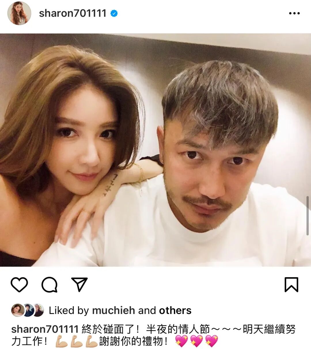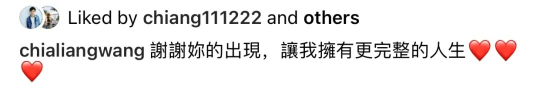 未婚夫王家梁po了同张照片,并配文“谢谢你的出现,让我拥有更完整的人生”: