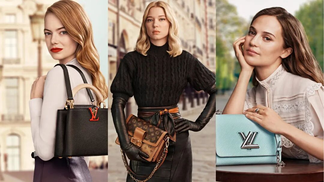 路易威登的国际代言人选择方向也十分类似:奥斯卡影后Emma Stone,法国女星Lea Seydoux以及奥斯卡最佳女配角Alicia Vikander等。
