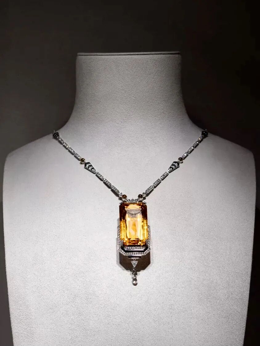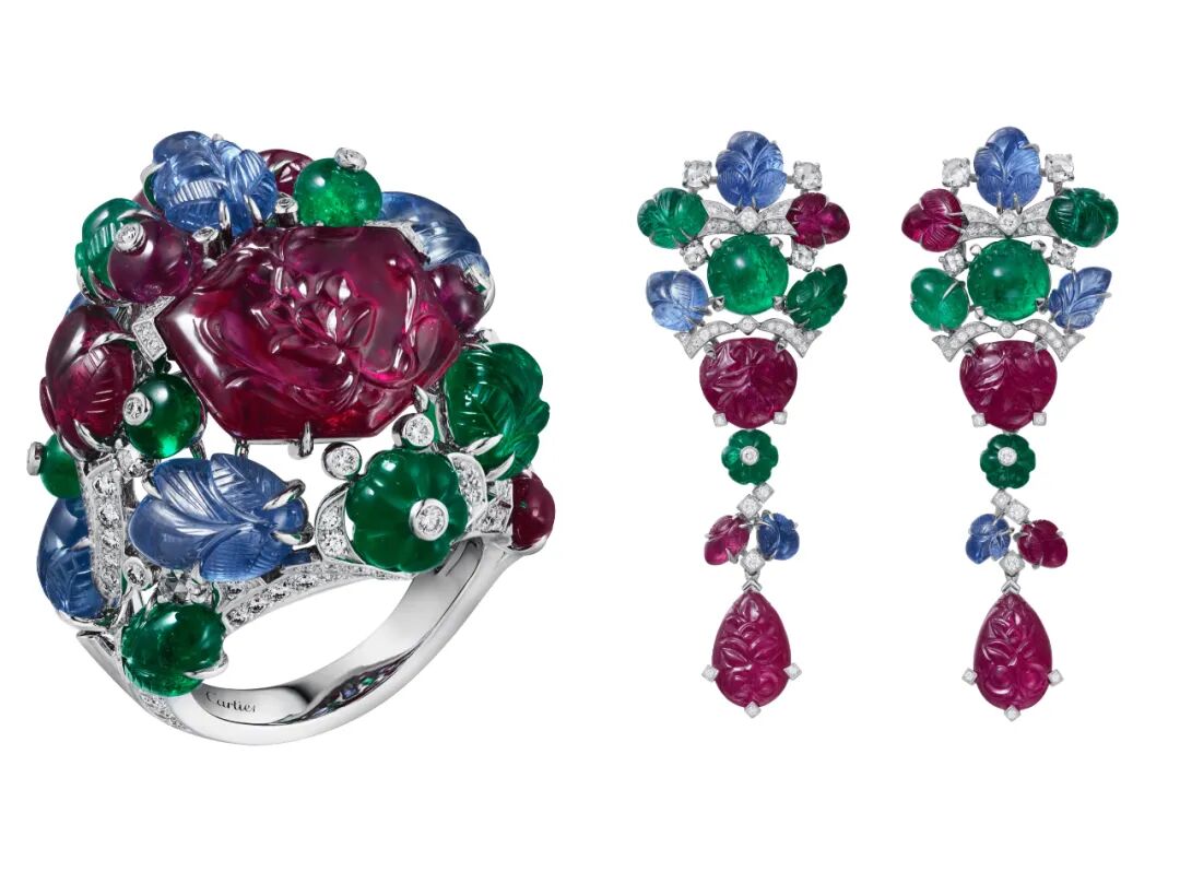 虽然内娱已经全面进入了红毯内卷时代,但巩俐一直是清流般的存在,作为北京国际电影节评委会主席的她最盛大的造型也就是那身白衬衫。接受专访穿了件针织衫;哪怕到了自己的主场《兰心大剧院》放映也是一身随性的牛仔夹克。对于穿衣她永远报以最轻松低调的心态,不能抢了电影的风头。▲露着精致优雅,各种卡地亚珠宝加身,低调却也提升了整套造型的质感。今年的巩俐55岁。至今还在专注拍电影是因为她觉得人要有自己的价值,不然很快就会枯萎。不随波逐流坚持自己的风格,不被外界影响专注磨炼自己的能力,说到底,其实都源自于一种忠诚于自己感受的能力。毕竟独特的风格和精湛的工艺,也是卡地亚身上最迷人的特质。而这种特质其实源自于卡地亚也是一个将感官能量发挥到极致的品牌。特别是通过此刻正在上海举办的卡地亚全新SIXIÈME SENS PAR CARTIER高级珠宝展,我更是身临其境感受到了卡地亚独特的风格与令人惊叹的工艺。SIXIÈME SENS是法语中“第六感”的意思。都知道人有视觉、听觉、味觉、触觉、感觉这五感,通常我们能想到珠宝给人带来的感受或许只有浅薄的一层感官,但卡地亚致力于珠宝与佩戴者之间“第六感”的共通,珠宝也可以给人带来强烈的情感共鸣。当然这是站在佩戴者的角度。之于我们观赏的角度,我觉得这第六感更多是高级珠宝带给我的无限遐想。尽管每件珠宝都有自己的命名,也被设计师与工匠赋予了深刻的含义。但当自己站在这些珠宝面前,看着这些被历史打磨过又或是掩藏在地下多年的古老宝石,很难不去想象它经历过怎样的时代,见证过多少传奇故事的发生。也很难不去猜测,设计者想借由它去传递怎样的情感,而制作它的工匠又在其中倾注了多少心力。这就是珠宝激发出我的第六感,也是珠宝的魅力所在。它拥有可以尽收眼底的美貌,令感官沉醉;也拥有引人遐想的故事与感悟,令心中的意象释放。《感官沉醉》、《本能直觉》与《意象释放》也是这次高级珠宝展的三个篇章。展览总共有460余件卡地亚的高级珠宝和腕表作品,挑一些我最喜欢的与大家分享。这是我最喜欢的一条项链,2颗最大的产自莫桑比克的六边形雕刻红宝石总重90.92克拉,最大的吊坠和主项链可以分开,足足有四种戴法。吊坠可搭配细链,端庄温婉;亦可当做胸针于胸前,成为全身搭配的亮点;主项链也可单独佩戴。当我看到这条项链我脑海最先浮现的就是《甄嬛传》里那句,就要花团锦簇、轰轰烈烈才好。形态各异的雕刻蓝宝石、红宝石和祖母绿在铂金枝叶上生长蔓延。传递出的不仅仅是一副繁花似锦的景象,更是传递着大自然的无限生机。各色通透的宝石就像是清晨的露珠,阳光撒过,晶莹剔透,每一个都是在努力生长的样子,隔着玻璃都能闻到一股芳香。卡地亚的珠宝展我们也安利过很多次了,熟悉卡地亚的朋友们一定一眼就能看出,这是卡地亚最标志性的珠宝风格——水果锦囊(Tutti Frutti)。