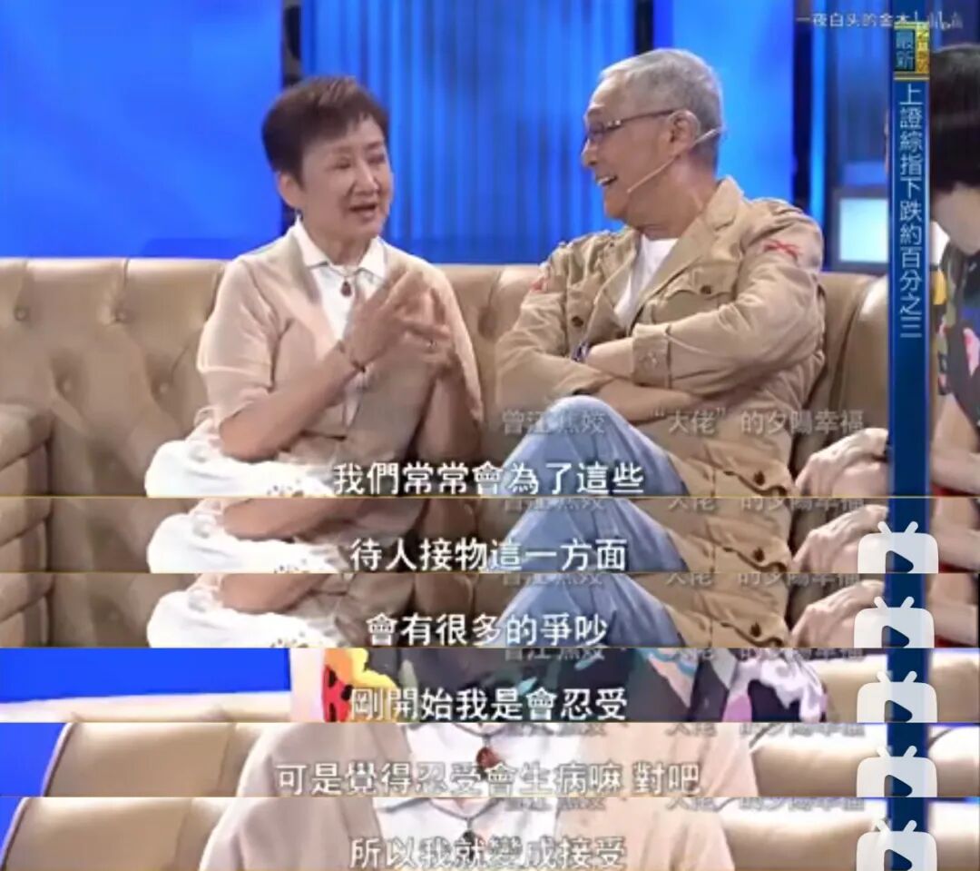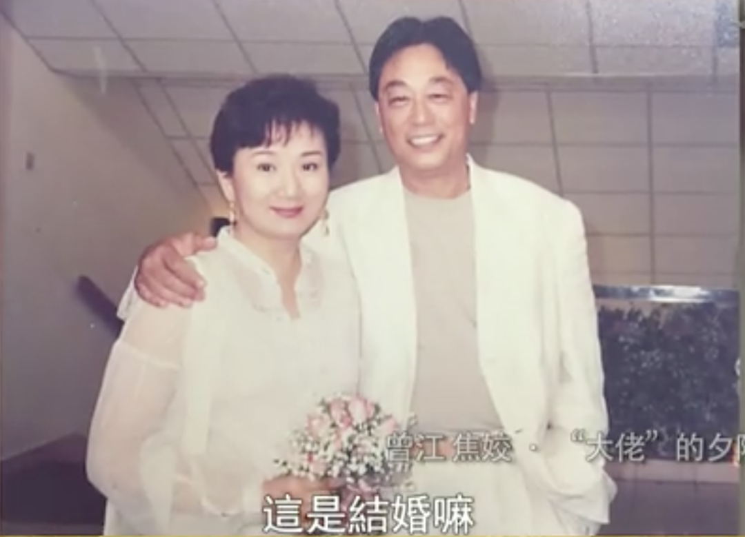 焦姣和曾江开始恋爱的时候也是有蛮多阻力,据说两人在一起的原因是蓝娣想和曾江复合,拜托焦姣去做媒,结果媒婆变新娘,所以两人一直等到蓝娣去世才结了婚。用焦姣的话说“在香港有太多过去”。所以两个人谈恋爱时老往外跑,陕西啊,北京啊,台北啊。结婚之前也经历过试婚,在美国开车从东海岸开到西海岸,这估计是曾江的主意。最后在新加坡结婚,没有请太多人,很低调,曾江趿拉个凉鞋就结婚了。结婚时,一个60,一个51,两个人没有孩子,因为以前的婚姻都生育过了(焦姣和前夫生了一个儿子)。焦姣是典型的传统女人,她说自己的梦想就是要有一个家,对曾江几乎是百依百顺;而曾江是火爆脾气,希望“老婆听我的”,同时又觉得老婆对外人“太忍”,让他不开心。可以想象这段婚姻也经过了不少磨合,焦姣说以前是“忍受”,但觉得忍得多了人会生病,于是变成“接受”。不管怎样,焦姣和曾江的婚姻是维持最久的,近几年夫妻两人默契十足,大概曾江年纪大了,性格也柔和多了。二人在《窃听风云2》里一起出演,焦姣演吴彦祖的妈妈,曾江演黄氏同,也算是佳话。
