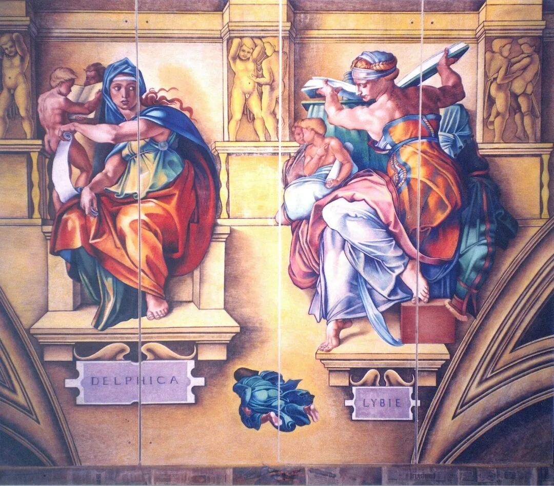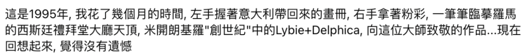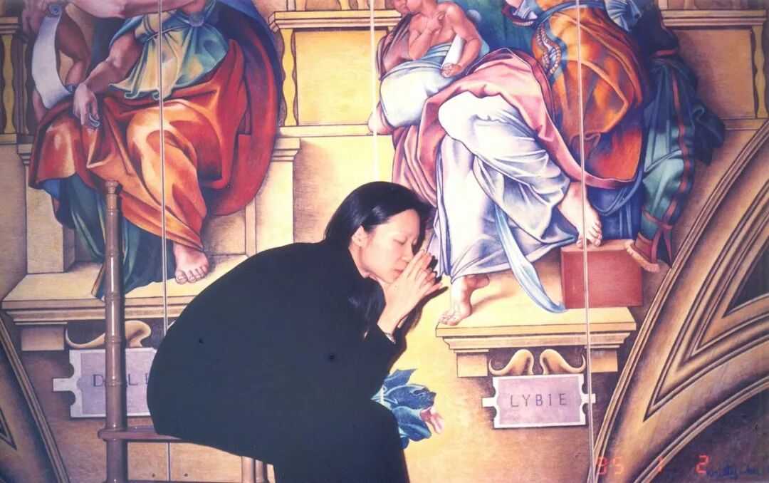 1995年,曲家瑞花了几个月的时间临摹出一幅米开朗基罗《创世纪》里的人物。