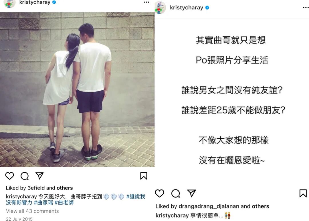 ▲ 随便一条po文都能引发议论纷纷,害得她得立马澄清强调“纯友谊”。
