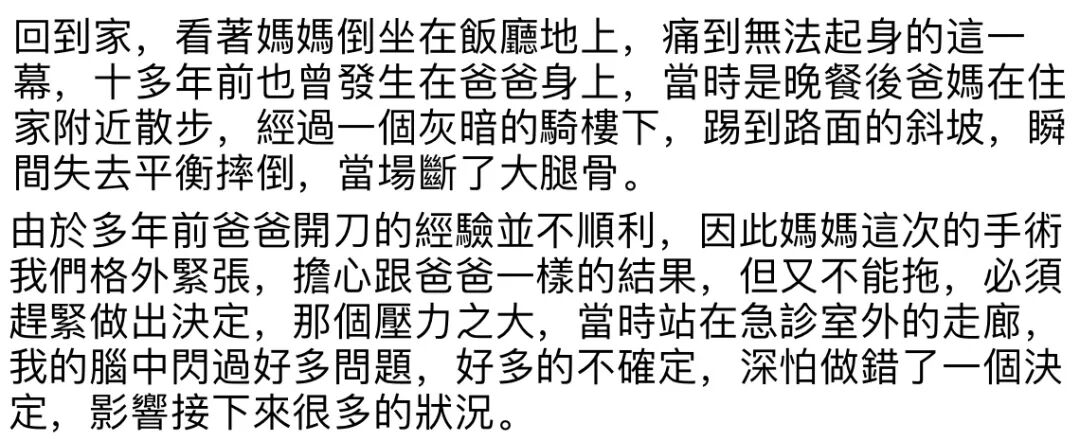 ▲ 出自曲妈妈前两年摔倒后曲老师更新的社交平台内容,回忆了当年往事,生怕会重蹈覆辙,幸好曲妈妈康复得当。