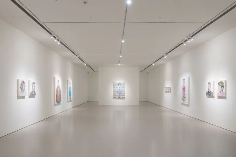 ▲ 比如,展厅的墙上写着她这个系列的创作初衷,选用丰富的色彩组成主角脸上的肤色、光影,就像是留住生命里充满不确定性的时间…