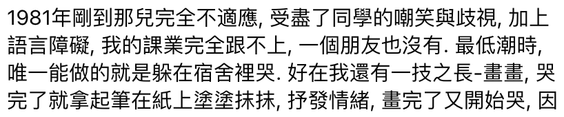 上面有更漂亮的姐姐,下面有听话懂事的妹妹,更别提还有个被视为传承香火的弟弟了,曲老师常自嘲她是那个最丑、最不得宠的小孩,所以从小就学会了察言观色,但只是静静记在心头,不发一语。