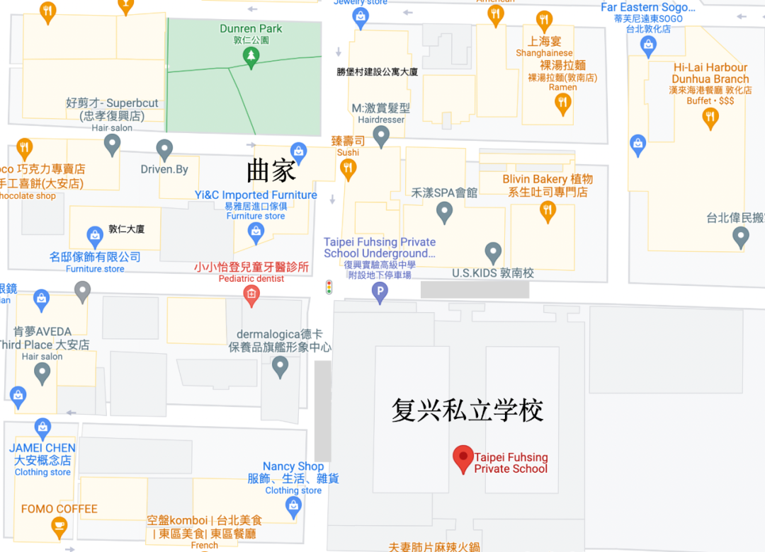 而曲老师,她就有,还是两间,位于寸土寸金的仁爱路四段。