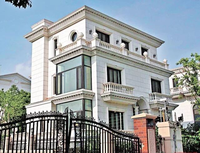 2003年,小女儿Jada出生。05年夫妻两以500万美金出售了位于洛杉矶的豪宅搬回了上海,那时他们位于上海的那块占地5000平米的地,正准备动工开建。▲ 这栋豪宅从开建到完工耗时6年,花费超过2亿人民币。整个房子由三栋建筑组成,形成了一个“品”字结构,外表采用的是典型的欧陆式古典设计风格,美轮美奂,设有严密的安保系统,仿若一座宫殿。▲ 为了阻隔马路带来的噪音,还购入了大量的香樟树填满院落。这种风水上招财的“凹”形设计真的很符合李连杰信佛的人设啊。据说里面光房间就有20多间,是他留给和利智的两个女儿的嫁妆。但这栋豪宅建成后一家人并没有多少时间入住,因为他们从07年开始就移民了新加坡,李连杰加入了新加坡国籍。▲ 18年记者拍到这栋空着的豪宅变成了保姆种菜,保安晒拖把的所在地,当真是有钱任性。李连杰曾经公开表示,移民新加坡就是为了给孩子提供更好的双语教育。一到当地,他们就开启了置业模式,买了两套总价值1亿多人民币的豪宅。▲ 一套288平米的位于Ardmord Park,靠近新加坡著名商业区乌节路,地理位置优越。