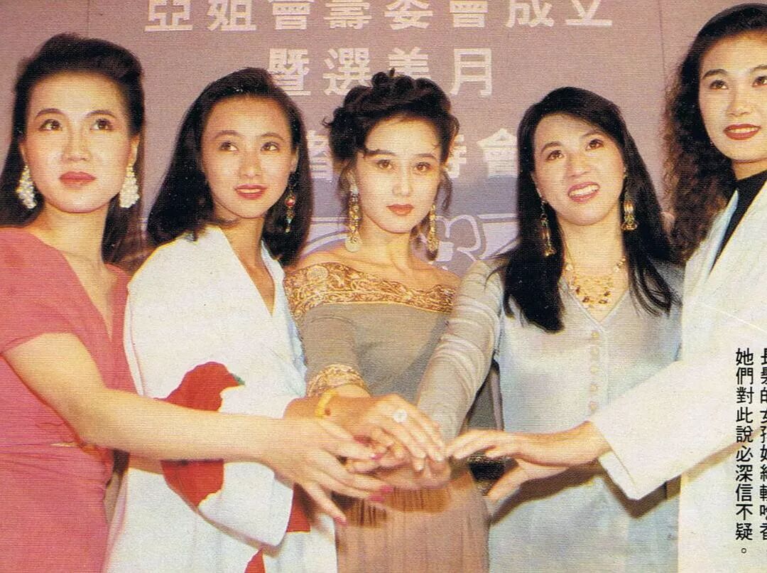 ▲ 这几张为世人津津乐道的照片其实来自亚视的一场晚会,亚姐出身的利智和赌王共舞一曲作为节目,却被媒体拿来大做文章,也传出了后来的诸多流言,包括她差点变成赌王五太、秘密产子以及被赌王其他太太们封杀不许回香港等等。▲ 这张图里利智的芊芊细腰真的好明显,据说只有22英寸(不到56厘米)。▲ 1991年她还担任了由亚姐组成的慈善机构仁美清叙的创会会长,组织出席过众多慈善活动。后排右二是那时还很青涩的“岳少”林建岳。利智的绯闻对象除了赌王还有南丰集团的主席陈廷骅,资产估值超千亿港币。李连杰也曾在一次采访里说当时追求利智的身家千亿,而自己却一无所有。