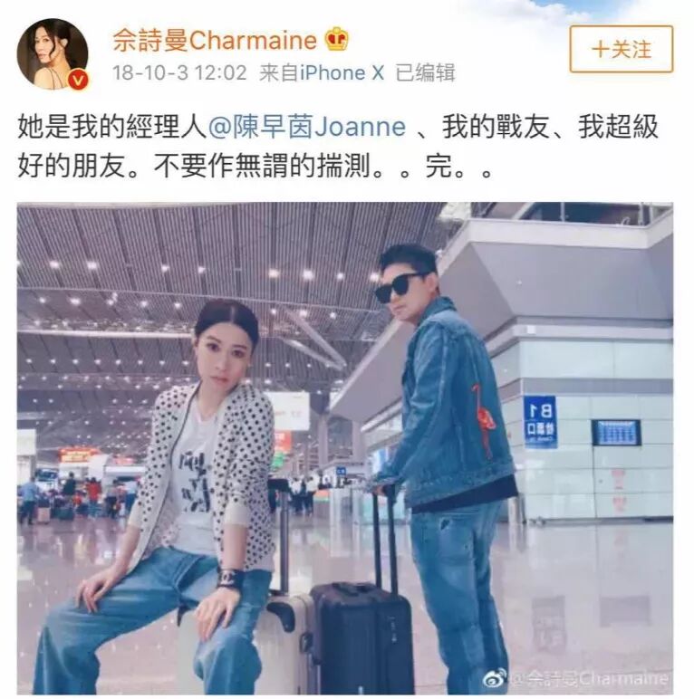 陈早茵还有另一个身份,就是佘诗曼的经纪人。所以有些年也盛传过佘诗曼出柜的传闻,当然都是误会了。