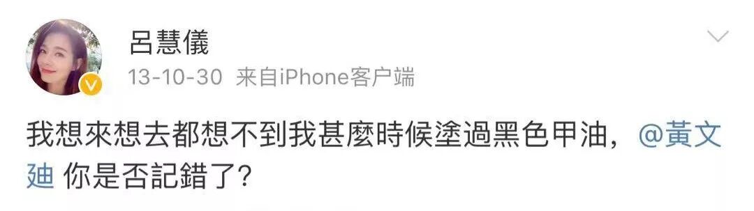 文章很长,截取重点:那张黑色指甲油照片是吕慧仪上传的,那就是她和黄文迪的手,是他们污蔑我,为了曝光、为了见报,做这等可耻之事!