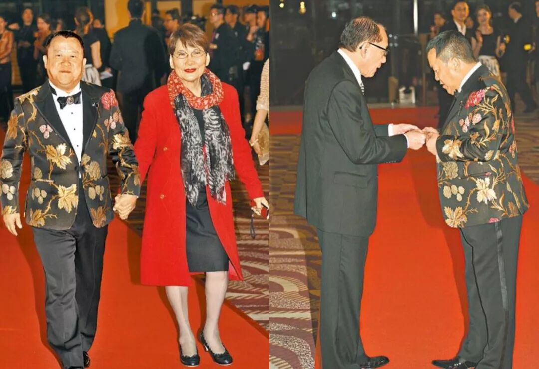曾志伟牵着方逸华的手入场,和杨受成平起平坐。