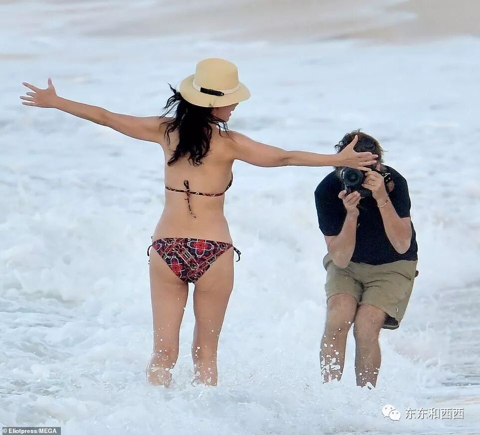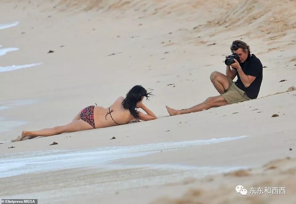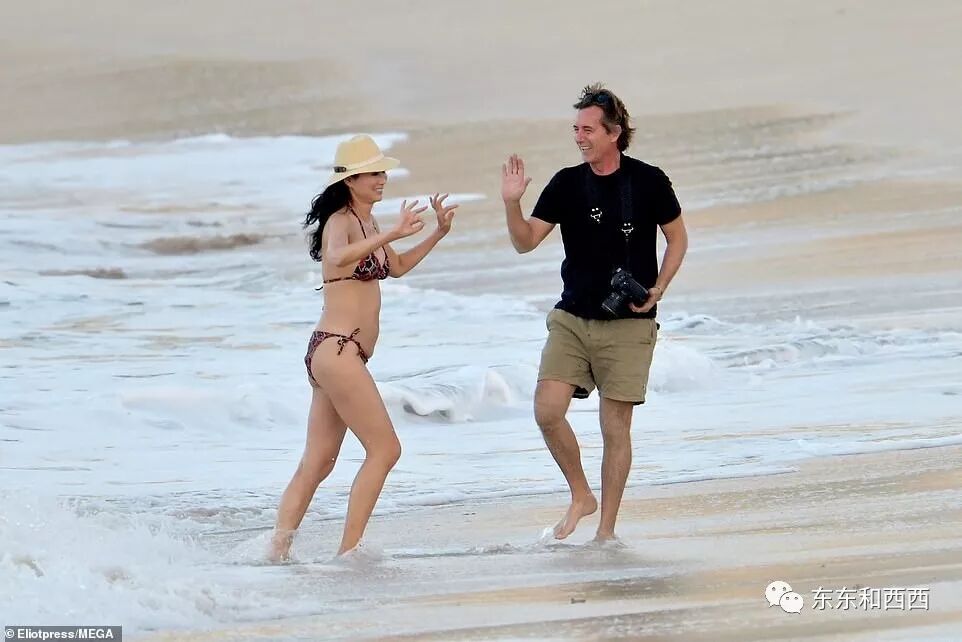 邓文迪倒是一直形单影只,海滩上这位老外其实是法国著名摄影师Jean Philippe Piter: