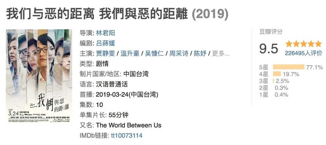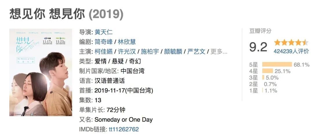 最近,台剧《想见你》口碑热度双丰收,豆瓣评分一直稳定在9分以上。虽然在评分方面还没有超过之前的现象级台剧《我们与恶的距离》,但我认为这部电视剧有着更深远的意义。