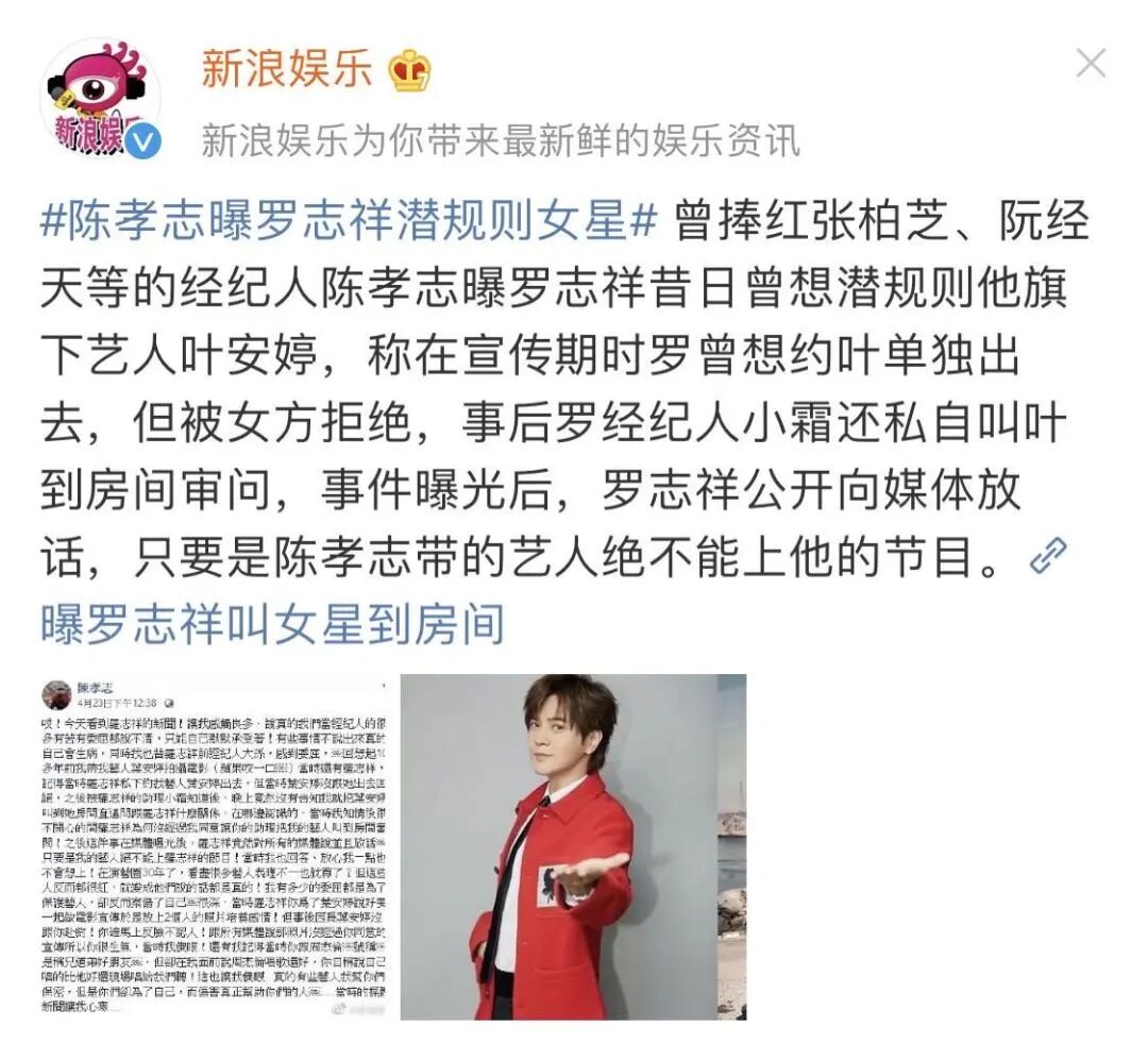 而对于不从他的明星,他就可以不让她让他的节目,因为在娱乐圈,作为前辈和巨星存在的他,确实拥有强大的话语权。▲比如罗志祥主持过不少的综艺,是有一定的人人气基础的。