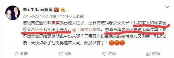但老李不愧是久经江湖的狠人,就算颜面尽失还能回到公众视野又闹出这么大动静,哪怕上回底裤被扒得一丝不剩,李国庆还能脸不红心不跳出来讲话,说手上有俞渝当小三的证据,自己的梅毒是在澡堂里泡澡的时候得的……你们笑你们的,我说我的,这样一位执着地活在自我世界里的狂人,一般人还真打不倒,小俞还有得闹心。小黄曾是女明星的前夫,来历非常常神秘,他亲口承认母亲曾开过餐馆,父亲据说很有钱,只是从来没出现过,于是有网友称他是某富商的“私生子”,但被小黄坚决否认。▲也只有向太敢正面怼小黄……