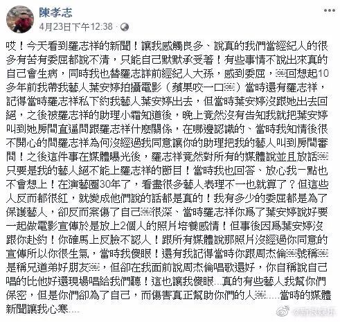 其三:疯狂行为的后面是无法面对真实的自我,只能在对欲望无限放纵中找到些许刺激。在一场恋爱里,原本以为男朋友只是小偷小吃,结果看到的真实状态是他放纵到常人无法想象的混乱。对于这样的风月老手,偷情就像一门手艺,放在那里不用老觉得技痒。这种痒是人类被欲望支配和异化的结果,物欲、性、名望、权力、贪嗔痴…. …当一个人的欲望毫无节制,不断被放大的时候,人类的法则在他身上已经失效了,这也是为什么这次罗志祥事件里,大家想说却又不知道说点什么的原因了。▲周扬青在她小号上说如果是一般的劈腿分手她不会出来说,而是罗志祥已经夸张到超出正常人理解的范围,她说出来是为了让大家看清一个狂人的真面目,不让后继者对一个狂人再有不切实际的幻想,从而再次遭遇和她一样的伤害。