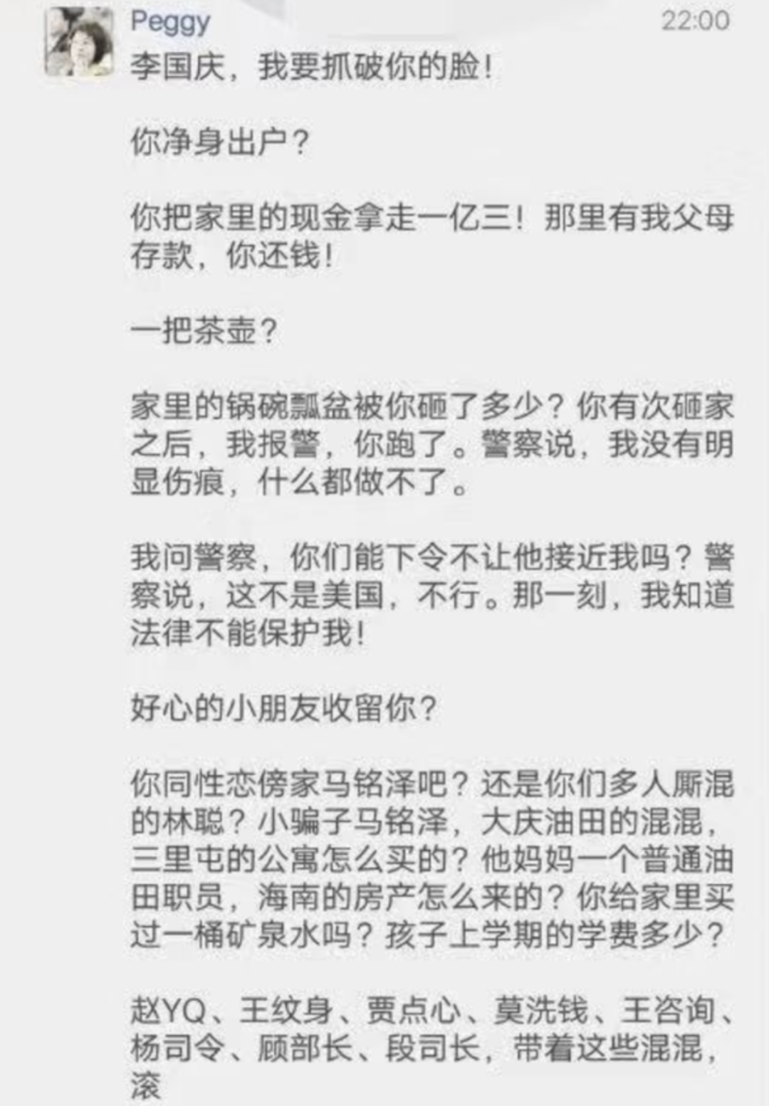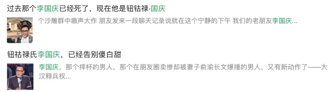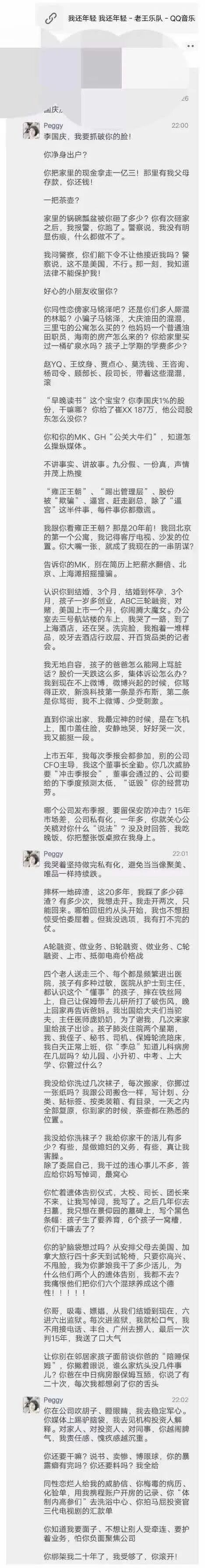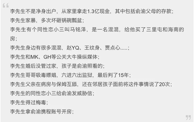 当年小俞连夜发长文,上来就要撕烂老李的脸。长文内容全程高能,有网友总结重点如下…….其狗血程度让人眼界大开。▲有兴趣大家可以上下滑动查看俞渝去年怒撕李国庆全文复习一下