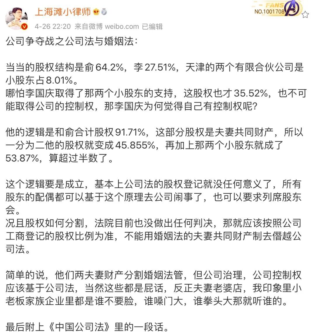 ▲对于老李的疯狂行径,太太很平静地表示公章全部作废……老李夺章事件前两天,4月24日,老李就对外宣布自己已经召开临时股东会,全面接管公司,俞渝仅为董事,无任何职权。