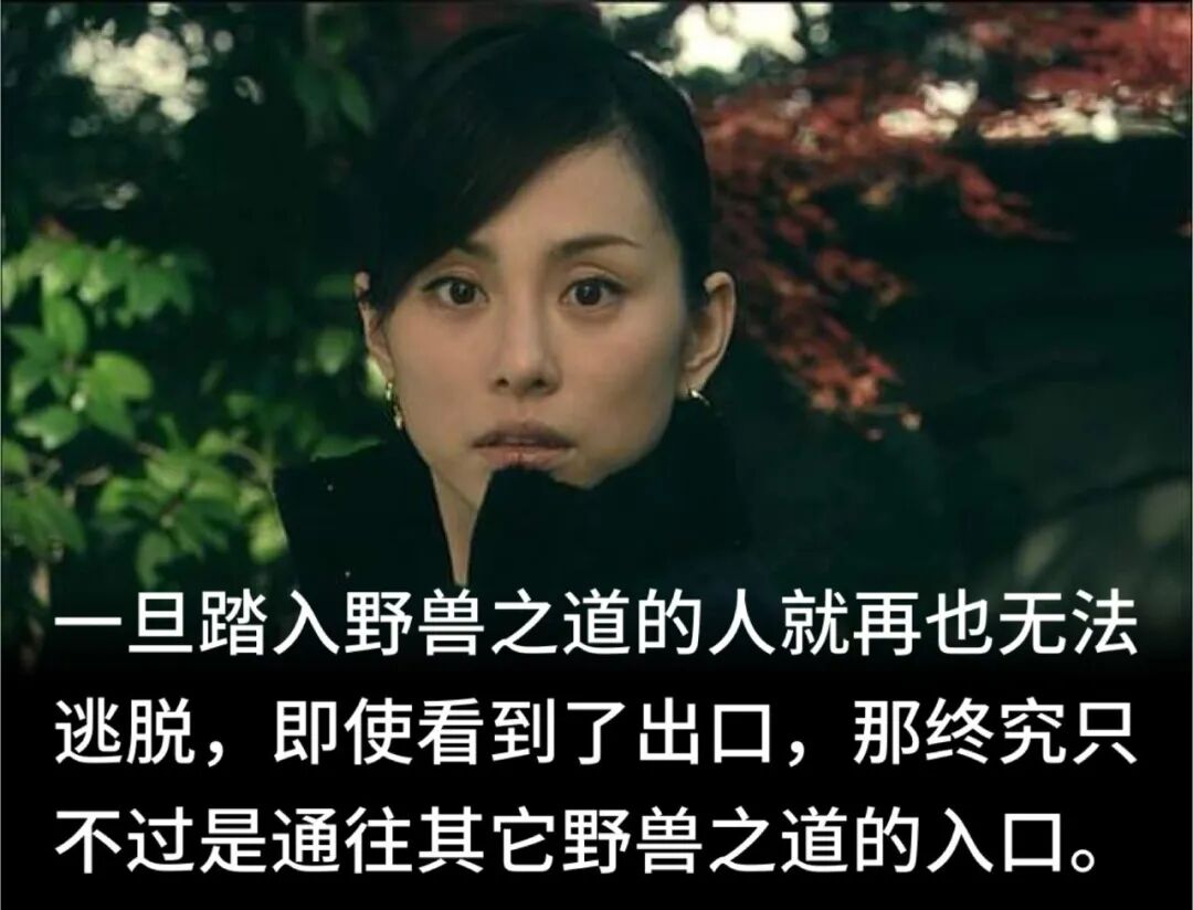 罗志祥妈妈接受采访说周扬青要毁了罗志祥,但罗妈妈说错了,能毁掉她儿子的只有罗志祥他自己。松本清张在《野兽之道》里就描述了一个为了自己欲望杀死丈夫,委身权贵的蛇蝎妇人,最后不得不每天活在你死我活的利益算计中,一招不慎就会摔得粉身碎骨。美妇人为了满足欲望用尽力气,但欲望也把她裹挟到了另外一个她自己都无法控制的世界。野兽之道,就是山林中猛兽行走的道路。当人在山中迷路,如果就此踏上野兽之道,不但不能通往生的方向,只会深陷更加诡秘、险恶的黑暗迷途。