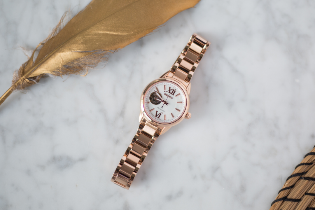 镂空小“飞轮”可以看到齿轮结构的运转,机芯同样是精工原装,也挺可爱的,机械环环衔接,袅袅娉婷,精致有趣。