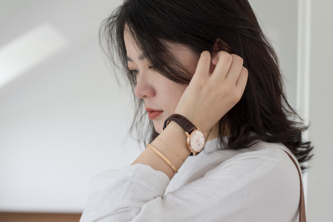 33.9mm表径恰到好处,平衡清雅与精致,也是最节省时间、节省思考的舒服大小,装点于每个女孩的生活,都是清爽利落,恰恰得体的。