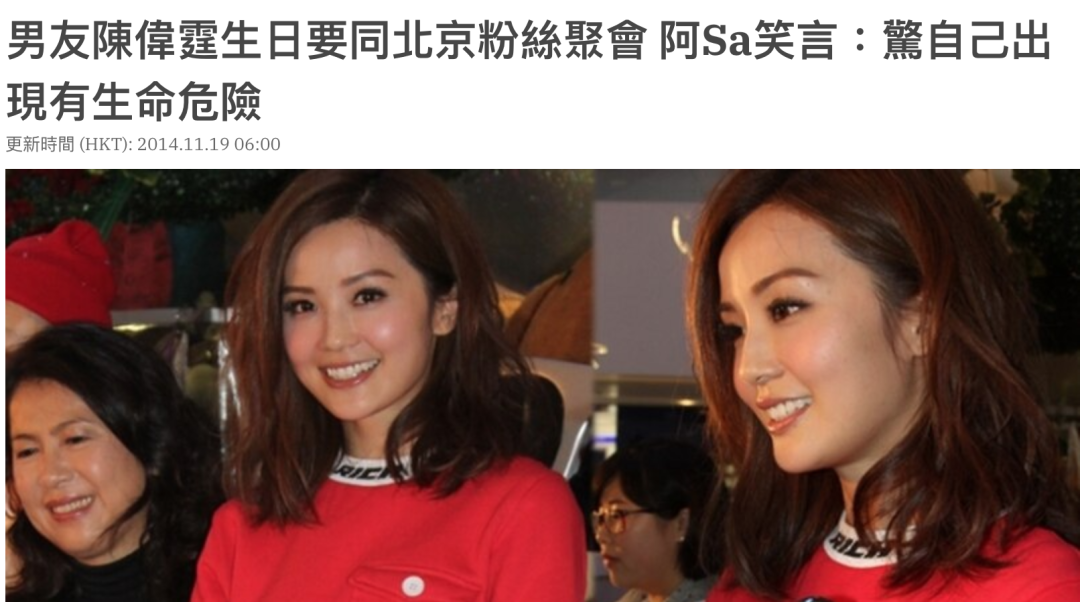 那一年,陈伟霆扬眉吐气,上了八卦杂志头条,因为掏了2700万给妈妈买房子;后来过生日,他没有回香港找女友,反而在北京和女粉丝一起庆祝,记者去问阿Sa,她笑言“我就不出现了,害怕有生命危险。”