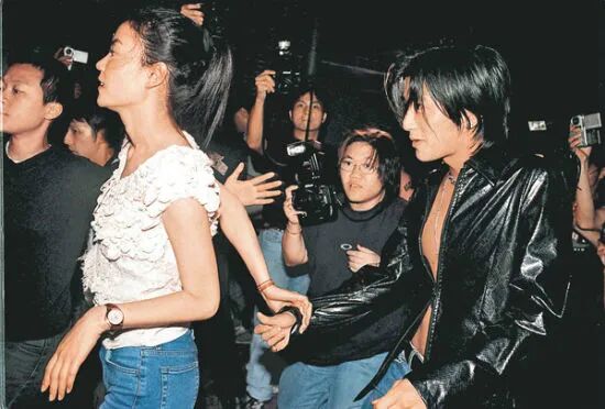 ▲ 而当时的媒体普遍认为这个超短头发是跟谢霆锋的情侣头。▲ 毕竟就在一个月前《花样年华》的庆功宴上,两人在一堆狗仔面前拖手出现,正式将这段相差11岁的“锋菲恋”宣告天下。