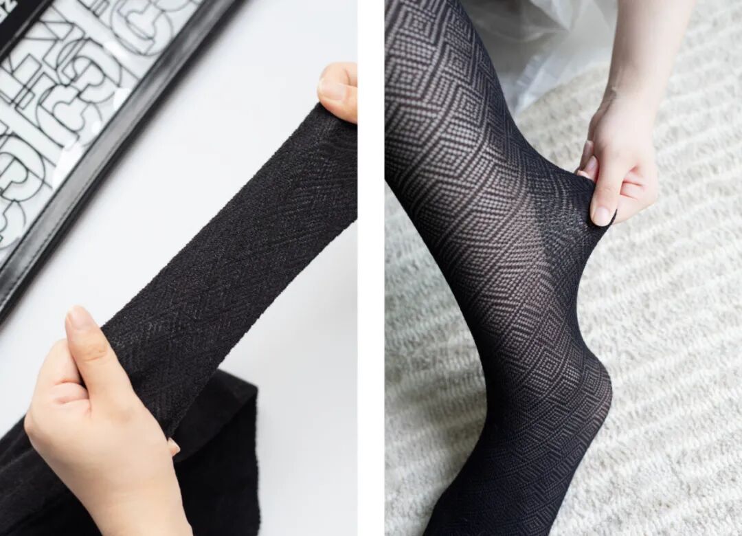 ▲Calzedonia是创立于1986年的意大利国民品牌,在全世界有超过2000家店铺,连着三十多年都只生产贴身衣物,在这方面超级有话语权。而且如果你拿到手的时候,你发现它家面料真的是一绝。这条袜子含羊绒,所以摸上去很细软,比普通羊毛还更保暖,完全是高级哑光质感,不会有那种塑料一样紧绷的假滑、劣质的光感。而且袜子的花纹做得很精密细致,针线很紧密,完全一丝没有乱飞的线头,穿起来也不容易勾到丝,这种工艺只有大品牌才能做得来的。因为弹性足够优秀,肥胖如我,也可以很轻松地拉起来。即使如蓝小姐那样身高一米七的姑娘穿上不会勒胯或者掉裆,小腿也不会很紧绷。各位小腿肌肉发达的姑娘都可以放心买。令人没想到的是,它还把屁股、腹部的肉收束得十分到位,自带一点提臀收腹的效果。再加上整条裤袜都没有缝线,穿鞋子都不会硌脚,十个脚指头可以放飞自我。 蓝小姐试穿了后,惊呼连连,天哪,Calzedonia简直就是为现在忽冷忽热的天气而生的哎。是啊,我说的没错吧,它符合我的理智与感情里所有的原则,即刻可以用上,而且必须长期备着,最重要的是,它真是美得让你嗷一声叫出来。袜子的厚度刚好适合广东初凉的天气,很保暖又不显臃肿,镂空的花纹又多了几分透气,不会被闷出脚汗。如果是北方的姑娘,可能更适合在有暖气的室内穿。而且它不像纯色那么单调死板,几何花纹有一种渐变层次感,穿上身后面料被撑开,细看有点透,但远看又黑,性感中有不失端庄,有一种似有若无的撩人。初凉的天气,穿着毛衣裙搭配它去约会,一秒切换到妩媚气质。这双袜子穿上以后,绝对不会有那种“双腿被捆住”的紧绷感,但是又有“不会再担心膝盖着凉”的温暖,并且有”看上去觉得腿很细“的女人味。