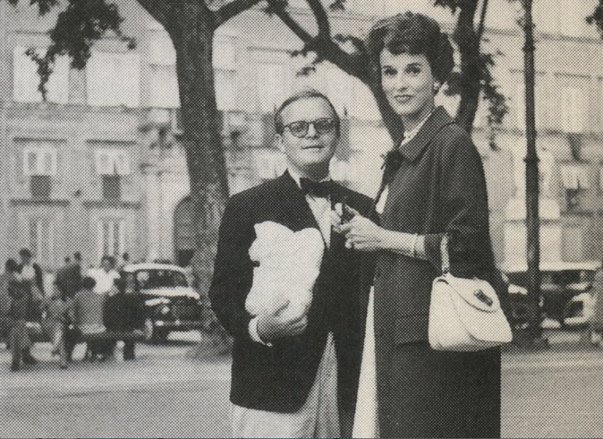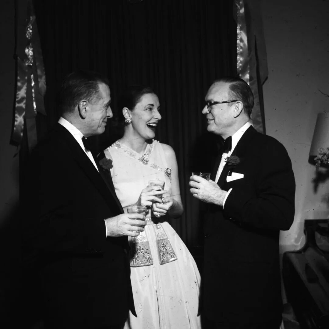 ▲ 正是这个追求更舒适更便利香奈儿经典套装,引入了全新的时尚轮廓,彻底改变了女性的着装方式,带来了简约典雅和动感优雅。▲ 60年代初的美国第一夫人杰奎琳·肯尼迪绝对是香奈儿套装的忠实爱好者。▲ 卡波特“天鹅”之一的C.Z. Guest身穿淑女套装,手拎Chanel包。她旁边站的是爱神的第三任丈夫、帕梅拉的老情人之一的Aly Khan。▲ 另一位同为卡波特“天鹅”之一的Gloria Guinness,曾被誉为“全世界最优雅的女人”,也曾把巴黎世家出的类似套装演绎得恰到好处。50年代末,时尚圈风起云涌,但对于人到中年的Slim来说并不是什么美好回忆。因为认识了帕梅拉,老公海沃德被迷得五迷三道神魂颠倒,还毅然决然要求离婚。两人最终在1962年分道扬鞭,当天下午海沃德就另娶了新欢。▲ 帕梅拉这边强调说是Slim和海沃德感情已淡,她还跟著名演员法兰克·辛纳屈和作家彼得·维特尔睡了。▲ 但Slim显然不这么认为,她觉得是在她陪老友Lauren去欧洲散心时,帕梅拉趁虚而入。除了当事人,大概没人能理清所以然来,只知道Slim所珍视的昨日时光,终究成为了梦幻泡影。C、第三任陪伴型老公,银行家Kenneth Keith离婚两年后,Slim才走出伤心阴霾,改嫁给了英国银行家,Kenneth Keith。他不仅是世袭男爵,还是位成功商人,参与打造了Hill Samuel银行,并在70年代成为了劳斯莱斯的主席。这段婚姻给了Slim基思夫人的头衔。赌气嫁给英国男人,很难说跟她被英国女人抢了老公全无联系。当然也有说法称,她看透了好莱坞男人的凉薄,决意远离纸醉金迷的名利场。不过这场婚姻也只持续了10年。在这10年里,她低调异常。再回来时,已经明显发福:1972年,她和女儿Kitty一起挽着卡波特出席晚宴:那时的卡波特是名流贵族们争相追逐的焦点,靠着小说《冷血》声名鹊起后,他的身边簇拥着各种仰慕他才华的女性友人们,各个都在上流社会有一席之地: