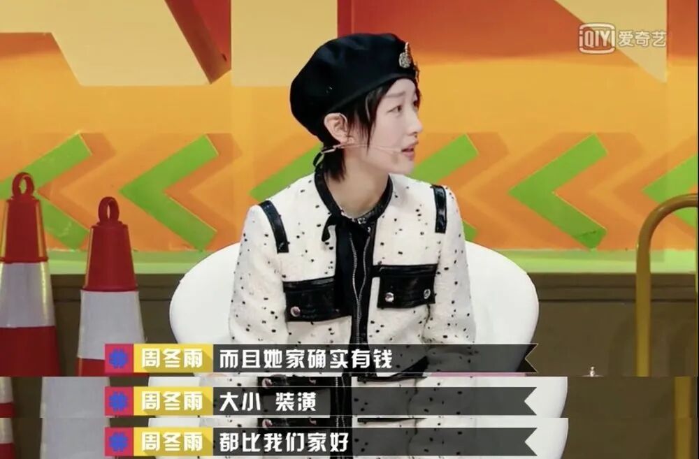 至于她和周冬雨的友情还在不在,则成为《吐槽大会》的爆梗之一,名记者易立竞在《吐槽大会》上一句现在周冬雨还带你玩么?问得她有些尴尬。