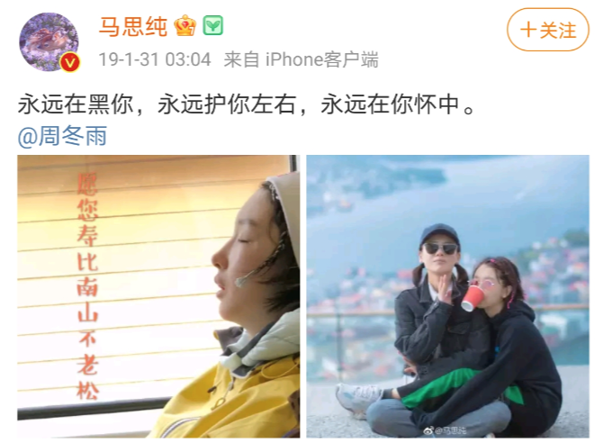 好到像连体婴一样,有记者还问过周冬雨,为什么你的微博除了广告就是马思纯?