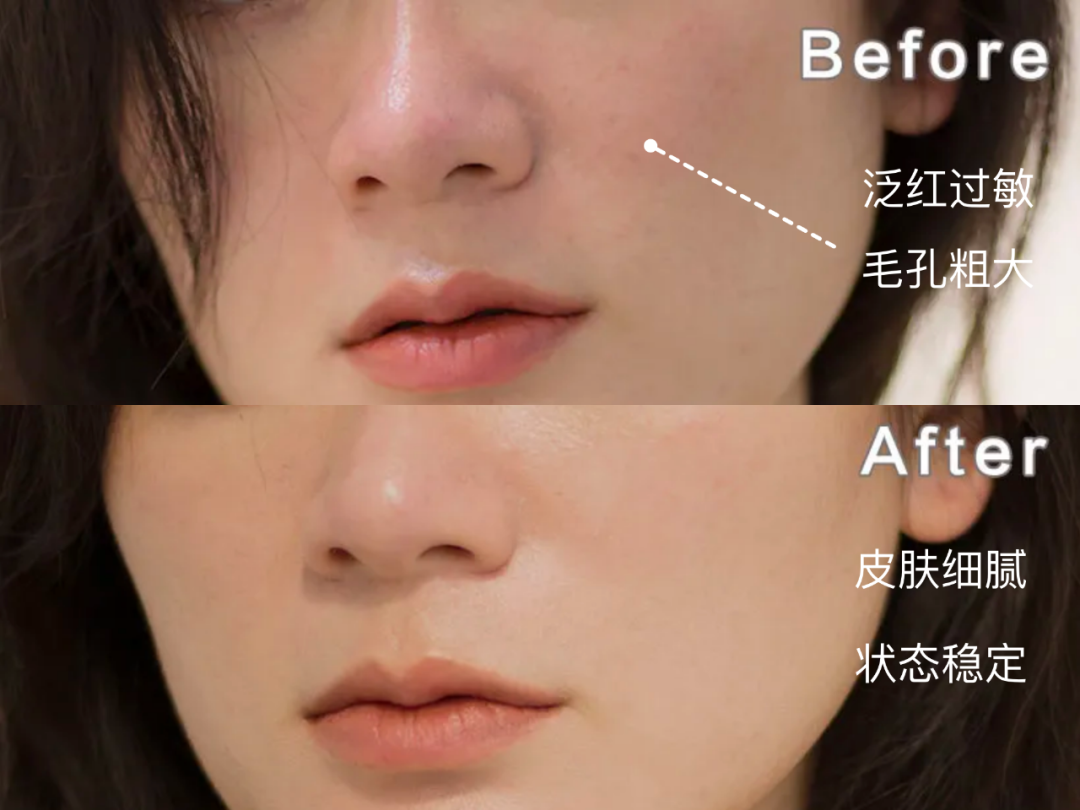 现在每天早上起来照镜子,整个脸看起来饱满通透,摸起来很平滑Q弹,毛孔也细致了一些,仿佛重获新生,即使出门被暴晒,脸也没有泛红过敏。