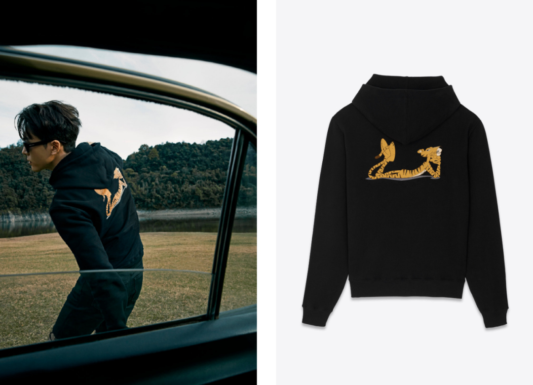 老虎图案连帽卫衣