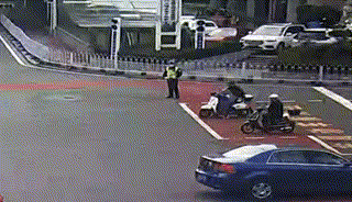 10月21日,湖北宜昌,早高峰。交警刘正斌如往常一样在岗位上执勤。