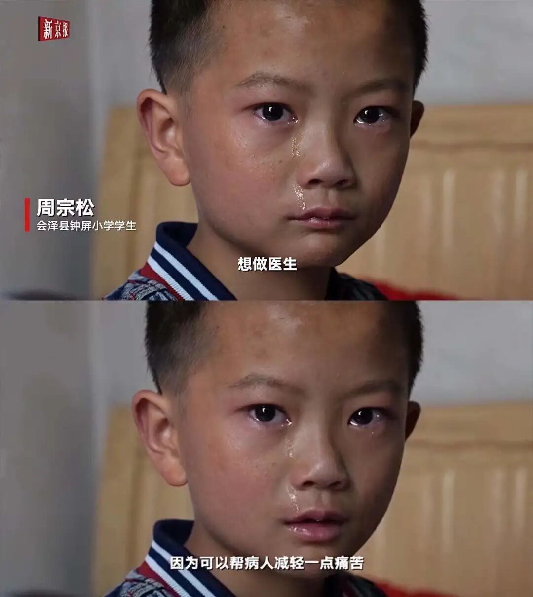 被问到“长大想做什么”时,小宗松虽颤抖着声音,眼神却格外坚定: