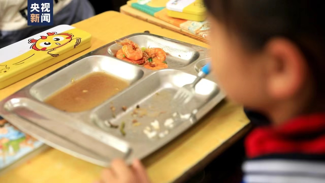 河南二年级女孩张笑笑,在学校吃午餐时,总是把盘子里的虾挑出来,放在一边。