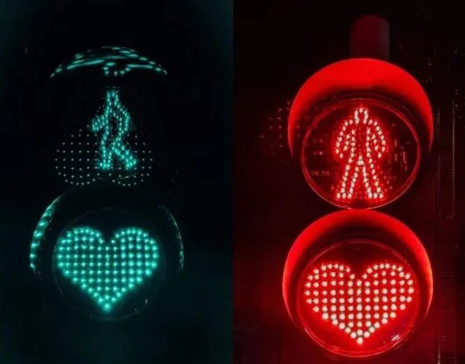 北京一条街道上的红绿灯,变成了网红的打卡胜地。因为当你等红绿灯的时候,它会变成一颗跳动的心,提醒你需要等待。
