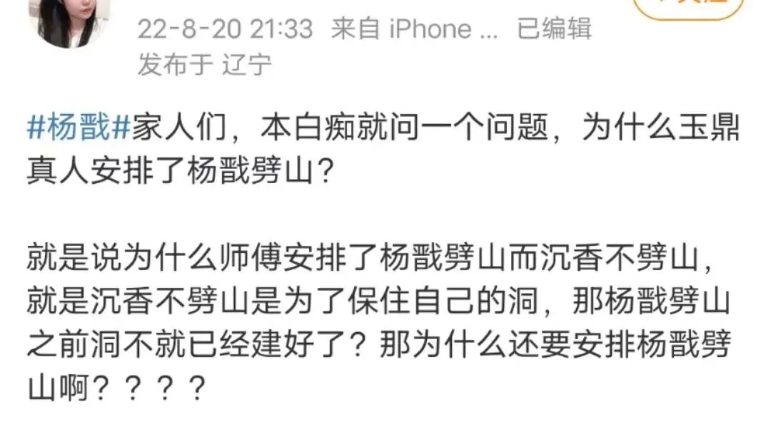 可奇怪的是,杨戬年轻时要劈山救母,师父还是鼎力支持的,怎么如今轮到沉香就不允许劈山了呢?
