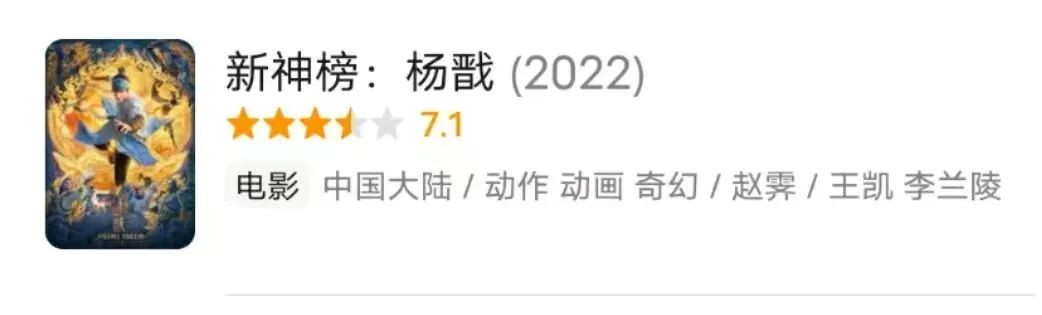《杨戬》现在评分7.1,基本符合它的水准了,9分给画面,-2分给剧情