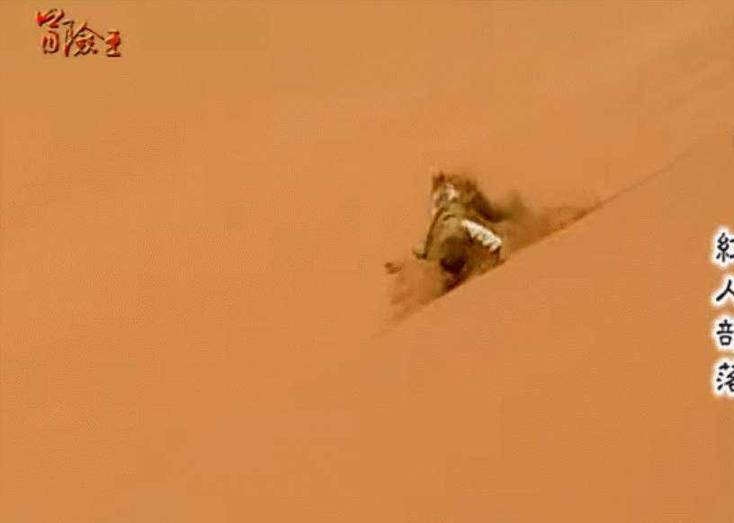在沙漠突遇沙尘暴,与风沙缠缠绵绵,最终滚落下去。