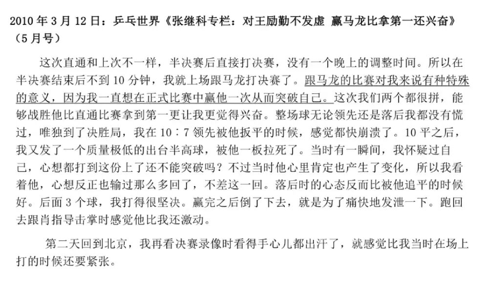 好像就是从这场比赛开始,张继科向上,马龙向下。
