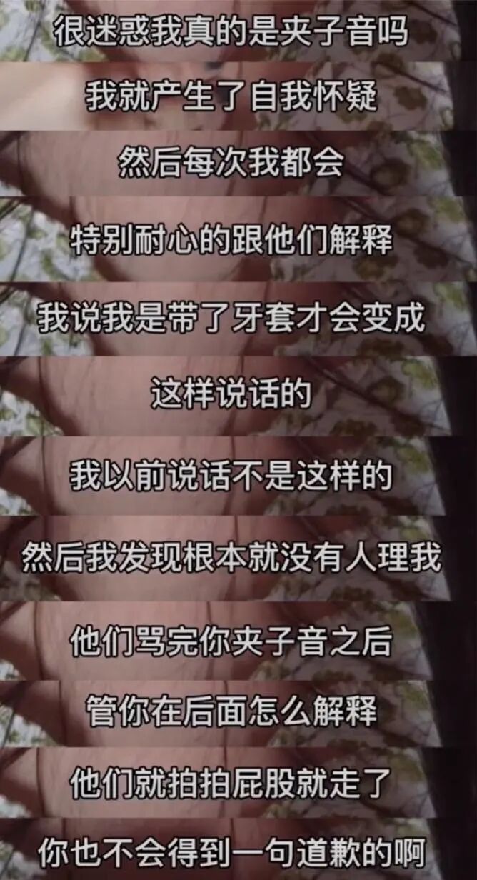 “还没有夹子这个词出来的时候,大家都说我讲话轻声细语,直到夹子这个词出来,他们都说我夹、装。”