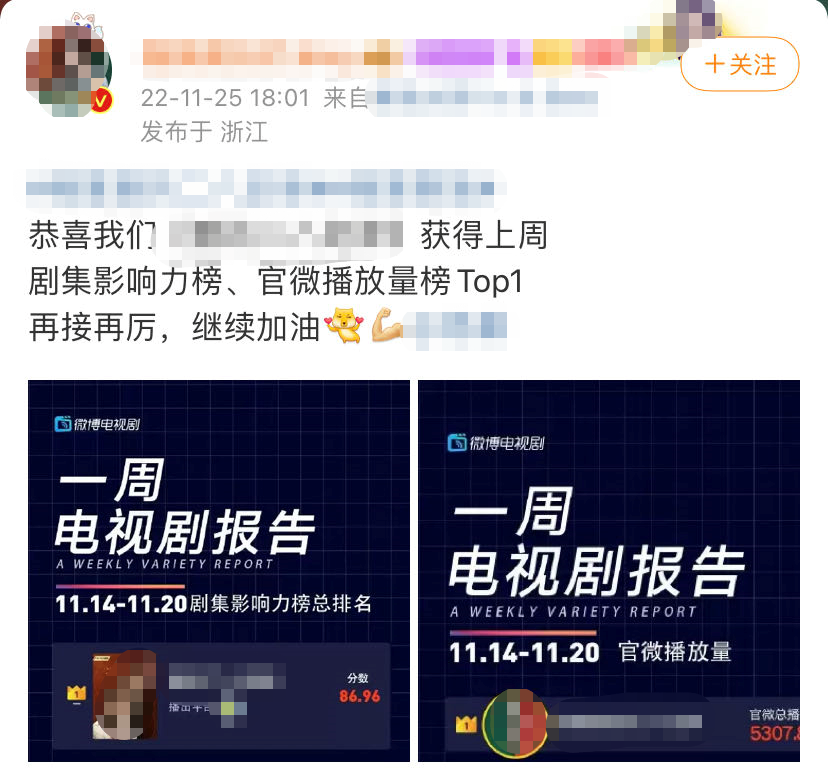 “如果剧集在国内的播放量数据不够抓眼球,粉丝就会在实绩图中加入海外地区的播放量;如果这部剧在总榜上表现不佳,就看它是不是属于某一领域的垂类剧,在垂类榜单上靠前也能吹。