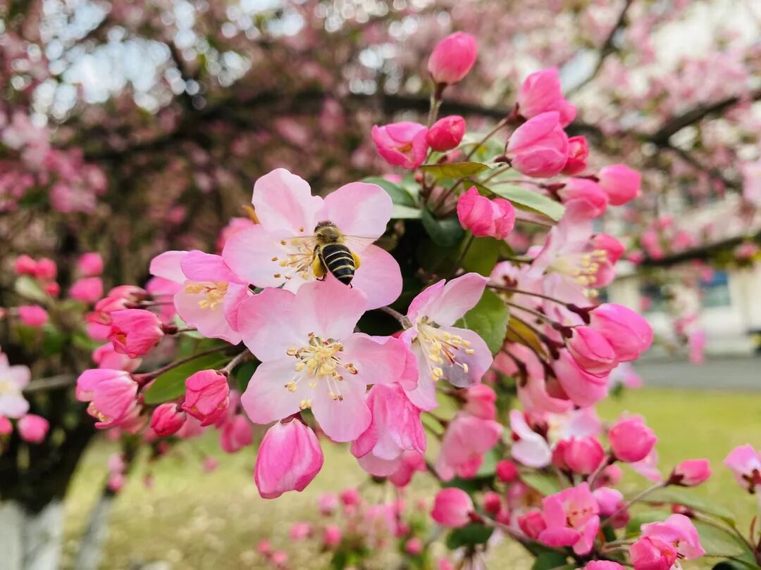 春花烂漫,引来蜜蜂飞舞其间