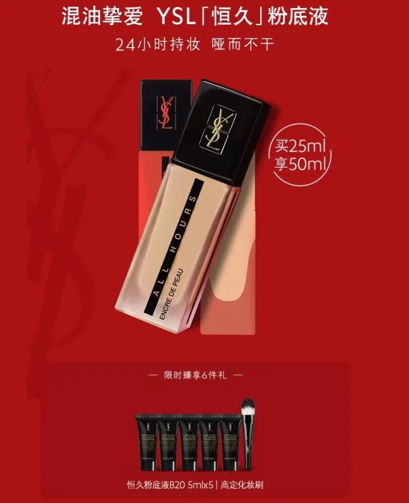 ★赠:YSL恒颜无暇粉底液5ml*5+粉底刷