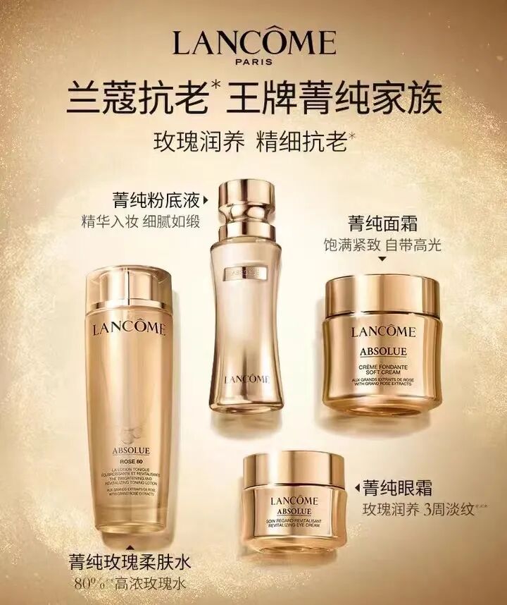 内含菁纯面霜+眼霜+粉底液+玫瑰柔肤水
